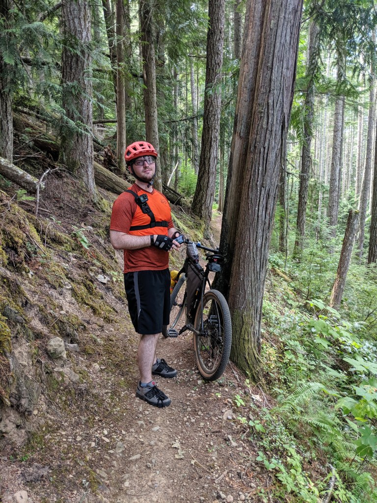 While I struggled, Nathan had less trouble navigating the switchbacks. He’d done this trail before, and he was also riding with much less weight on platform pedals — he still did need to put his foot down occasionally.